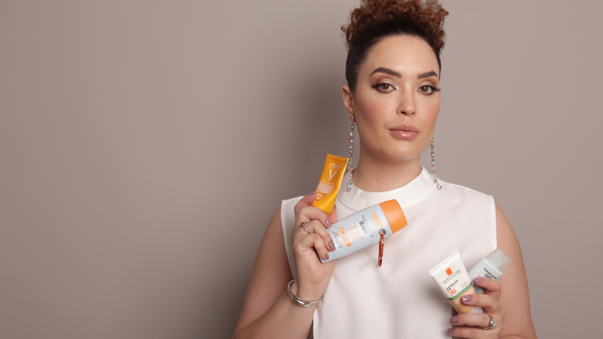 O protetor solar é indispensável! Opte por fórmulas oil-free e toque seco, que ajudam a controlar o brilho durante o dia.